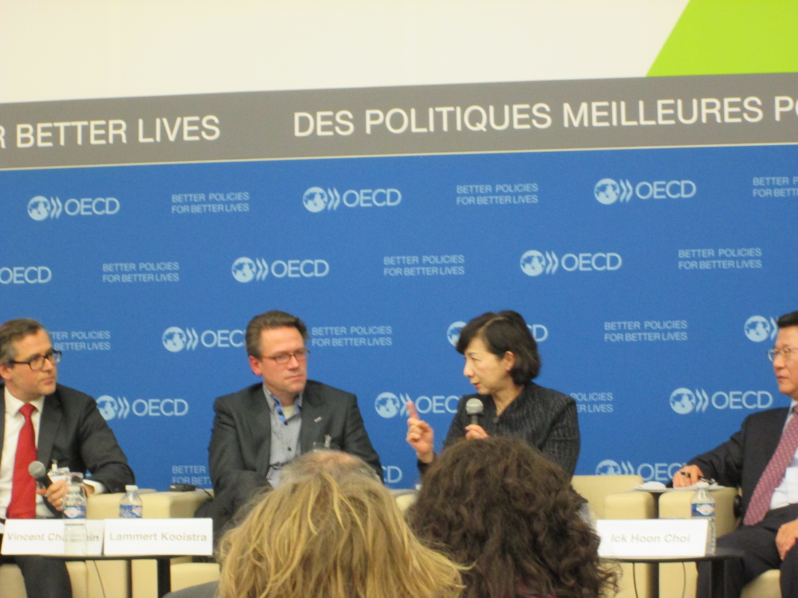 2015年12月14日-15日 パリでOECD (経済協力開発機構)主宰のGreen Growth and Sustainable Development (GGSD) forumが開催され、本学の林田佐智子教授がスピーカーとして招待されて講演を行いました。