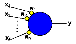 ニューロンのモデルを数式を使ってあらわすことを考えてみることにします。 (参 考図:sushikimodel.gif)
