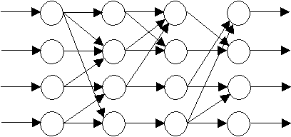 階層型ネットワークは1958年にResenblattにより提案されたもので、Resenblatt型 ネットワークとも呼ばれています。(参考図:kaisouzu.gif) これはニューロンを層状にならべ、前の層から次の層へ一方向にのみ信号が伝わると いう ネットワークです。 このタイプのネットワークは入力層のニューロンに加えた 信号(入力信号)に対して出力層のニューロンの出力(出力信号)が一意的に定まり ます。層数が少ないと解けない問題などがあります。しかし、 任意のパターンを識 別するのには最低3層あれば十分であることが知られています。